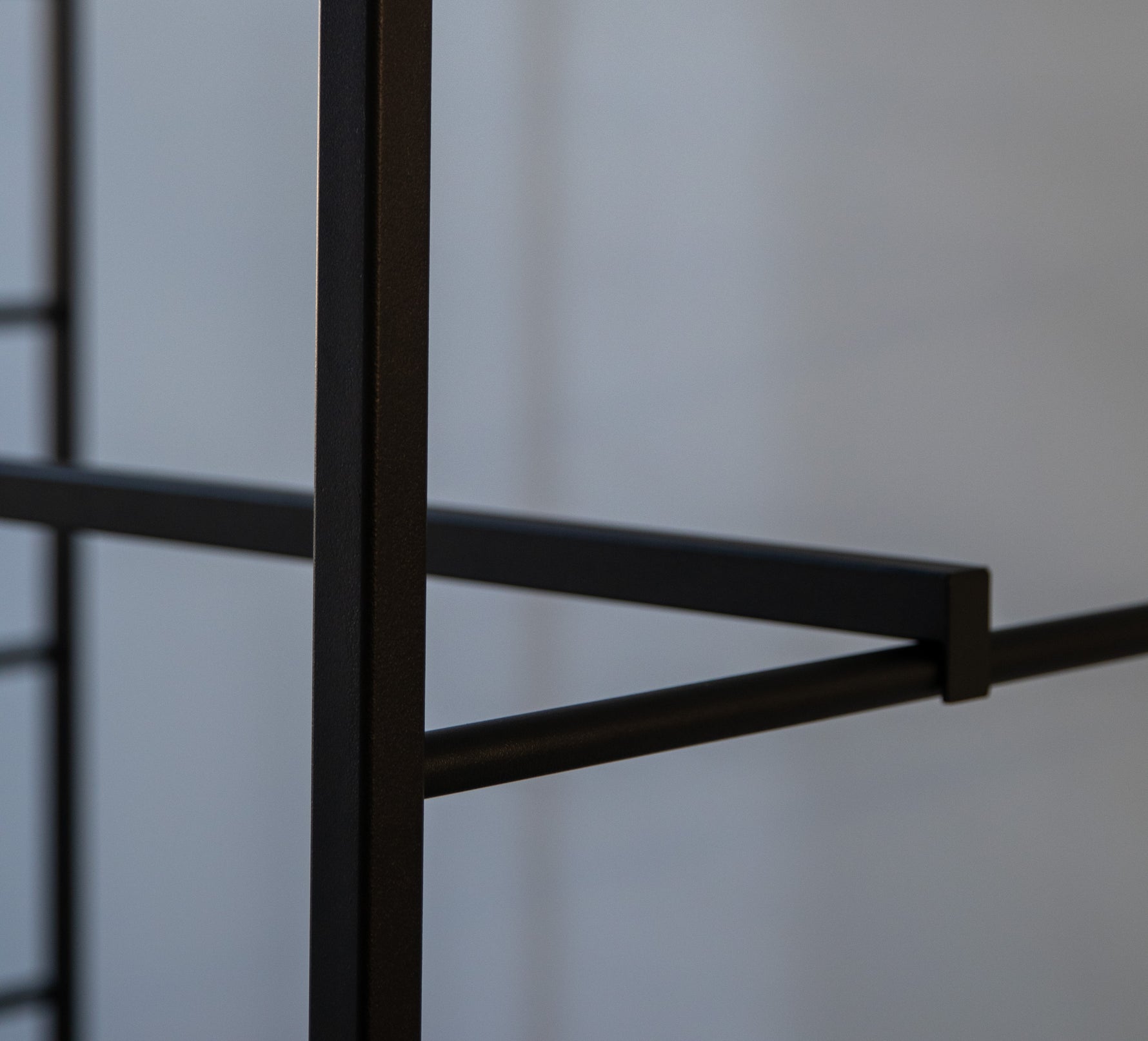 - Legs: 150 × 150 mm base plate, 200 mm vertical leg